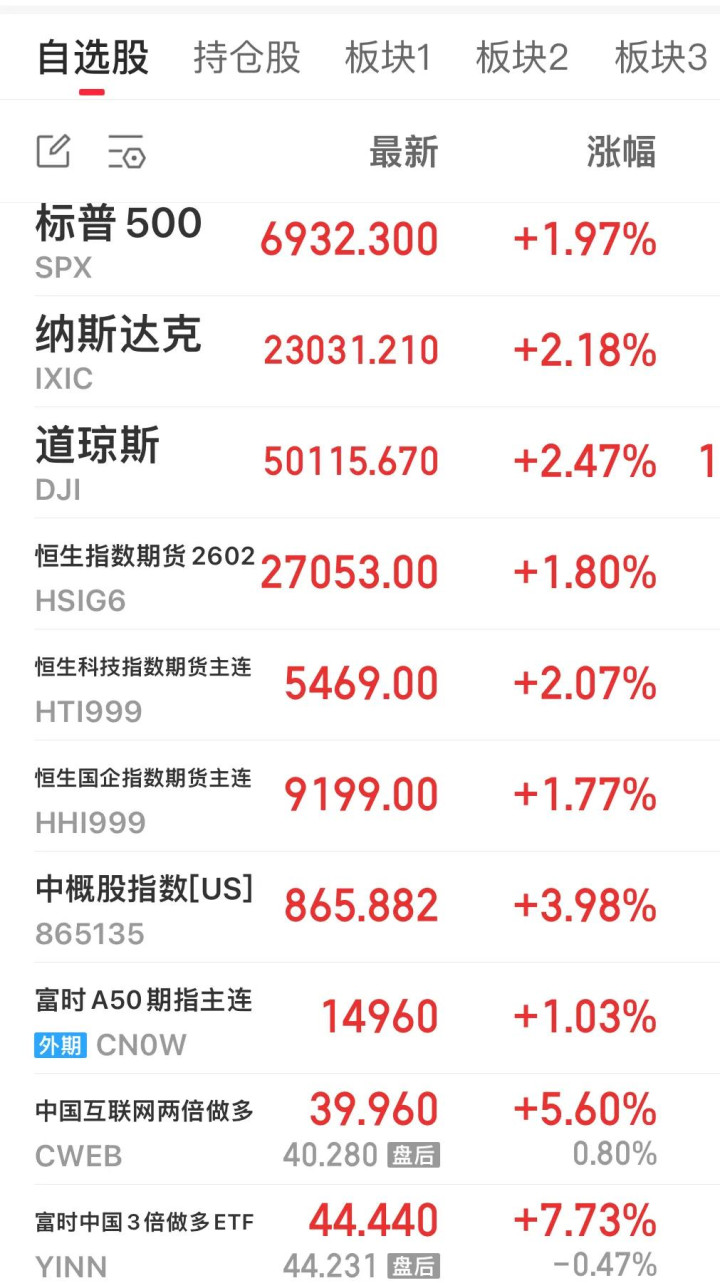 纳斯达克中国金龙指数暴涨3.71%,中概股指数同步大涨2.9%,蔚来、理想汽车等热门中概股涨幅均超6%,百度、阿里巴巴等龙头企业纷纷走强。